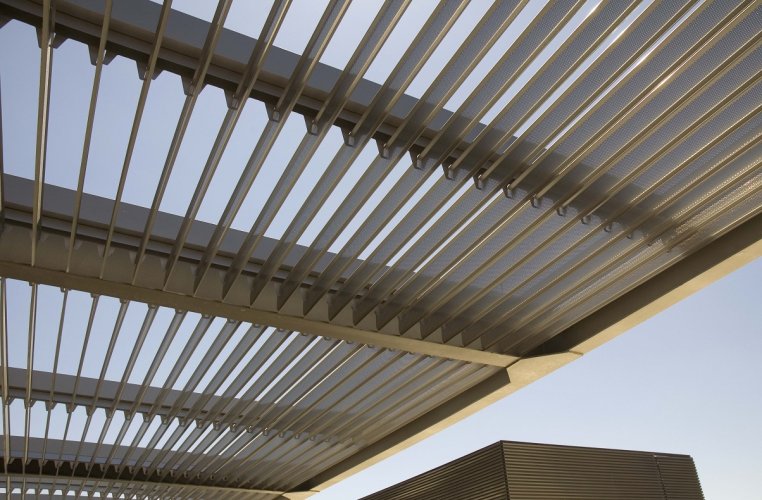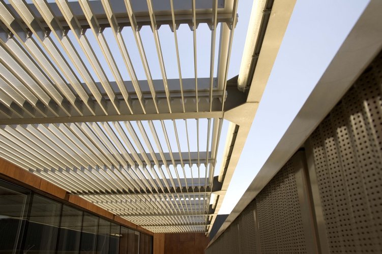 La luz natural (como cortasol cenital) o artificial instalada sobre este plafón, es suavemente difundida por los paneles.