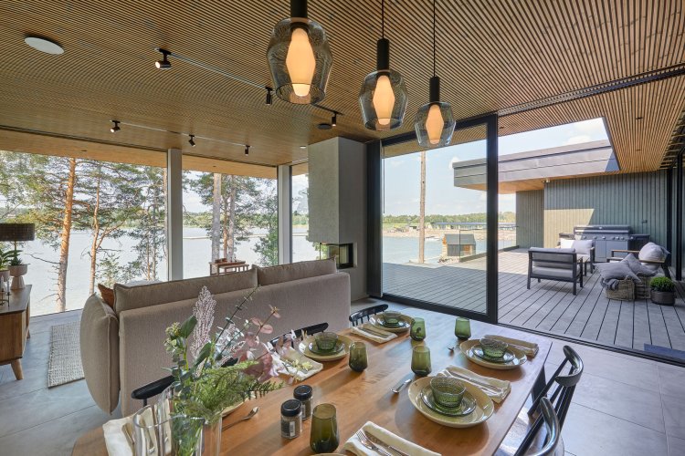 - Luna Triple 32×140: Es un panel Thermowood premium para fachadas, interior y otras superficies decorativas. Este producto único tiene dos ranuras profundas para crear una apariencia de listón en la superficie. La instalación es más fácil y rápida que instalar listones individuales. Luna Triple es la ganadora de la categoría Producto Sostenible en Architecture MasterPrize 2021.