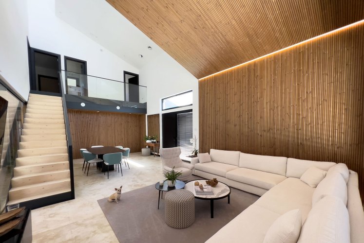 La madera termotratada de Lunawood, al estar libre de toxinas, es muy adecuada en paneles y paredes divisorias para crear una atmósfera acogedora. La superficie de madera no refleja el sonido de la misma manera que lo hacen los materiales duros y artificiales, lo que convierte a lunawood en una excelente opción para espacios públicos. La madera termotratada es uno de los materiales más utilizados en saunas y es excelente para interiores de spas por su baja conductividad térmica, su estabilidad dimensional mejorada y su naturaleza libre de resina.