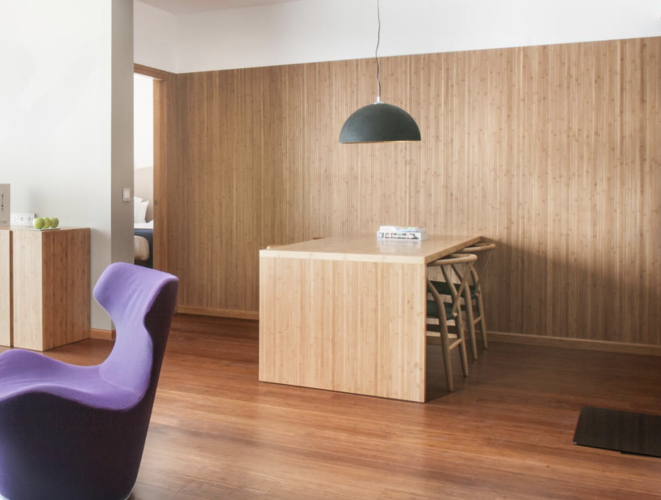 MOSO® Flexbamboo logra ser un producto de gran flexibilidad gracias a la unión de las tiras de bambú con un soporte téxtil. De esta forma, se pueden crear cuantas curvas queramos en las superficies.