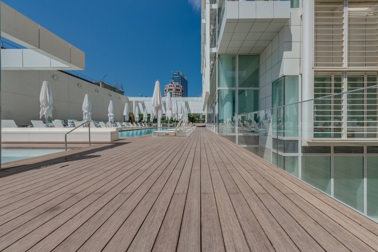 Hecho a base de fibra de bambú con termotratamiento y prensado de alta densidad, el cual le brinda a Bamboo X-treme estabilidad y dureza superior a las maderas tropicales, haciéndolo ideal para aplicaciones exteriores.