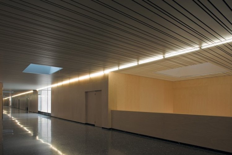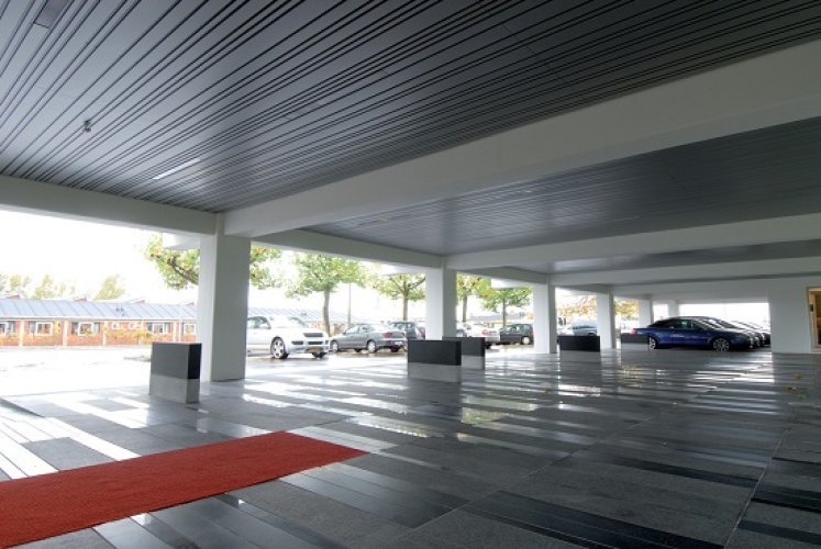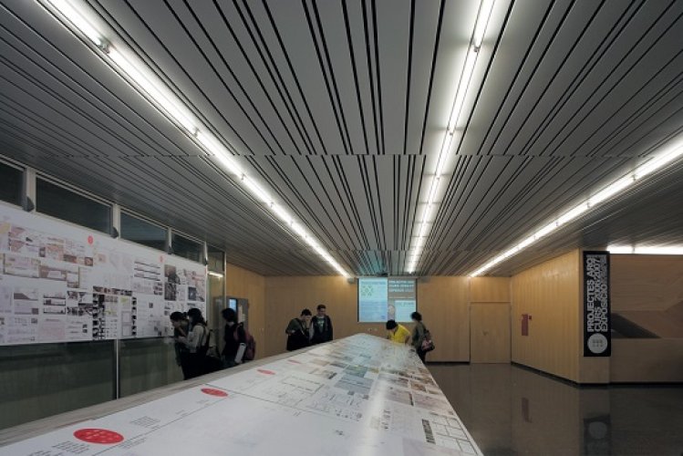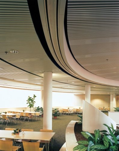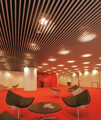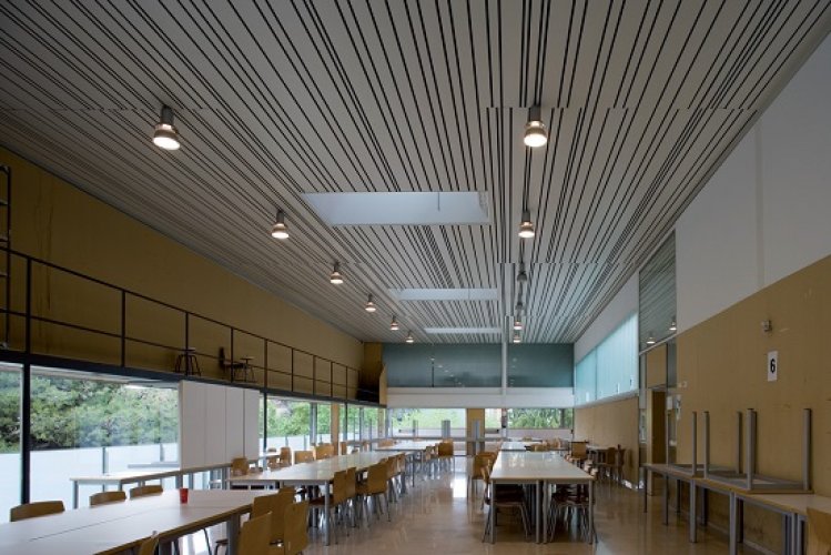 El plafón se puede fabricar en 80B,130B y 180B mm. y tienen la particularidad de que en el mismo portapanel se pueden alternar los tres anchos disponibles, lo que permite múltiples combinaciones de forma y color.