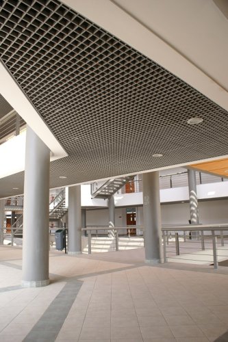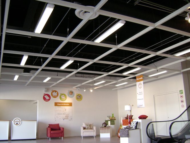 Los plafones Cell son abiertos y traslúcidos. Están formados por perfiles metálicos en U, que se ensamblan unos a otros creando módulos de 630 mm x 630 mm. Los módulos forman grillas cuadradas o rectangulares.