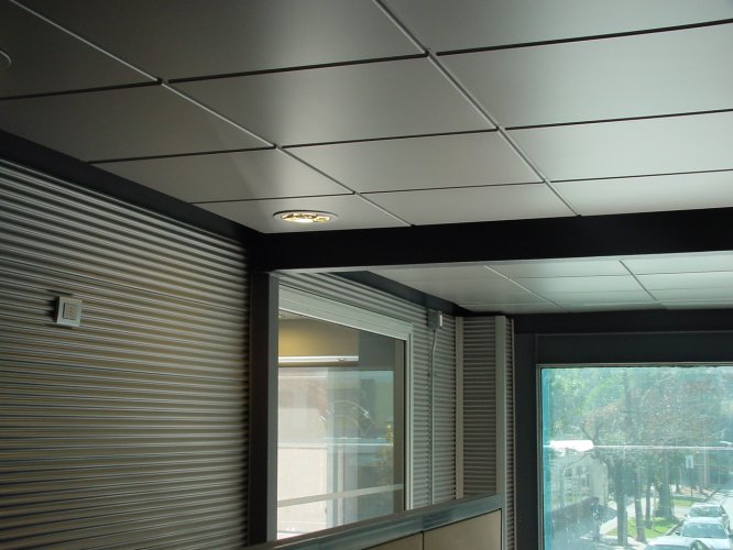 El plafón Tile Lay-In utiliza bandejas con un sistema de suspensión en base a perfiles grid de Hunter Douglas. Este sistema de suspensión queda a la vista, formando una grilla cuadriculada, que además puede ser prepintada en diferentes colores.