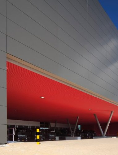 El Quadroclad es una fachada ventilada, formada por paneles compuestos por fleje de aluminio en el exterior y un alma de honey comb de aluminio en su interior. La instalación genera una cantería de 10mm entre ellos o también cuando se intercalan con paneles de vidrio (Quadroglass).
