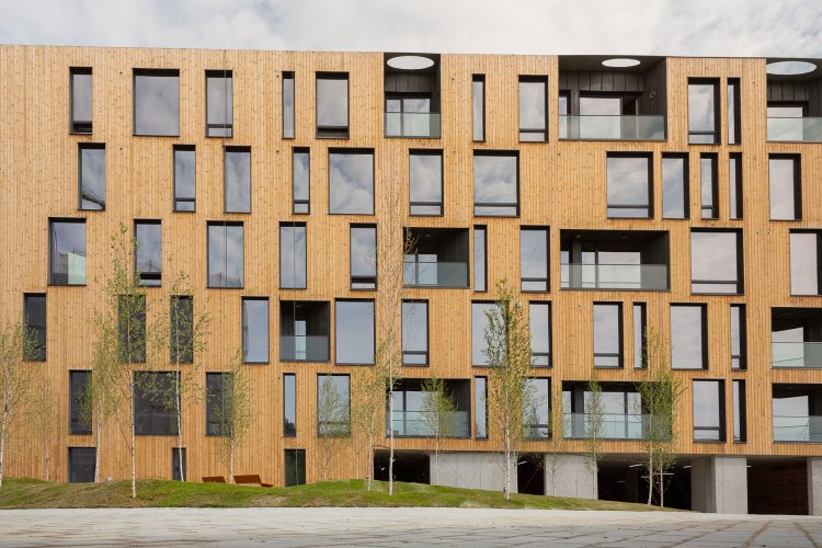 El Revestimiento Exterior Lunawood es un material idoneo para fachadas, gracias a su notable estabilidad dimensional, resistencia a la intemperie, durabilidad y aspecto hermoso. Lunawood no requiere necesariamente ningún tratamiento superficial incluso en zonas con un clima muy duro, lo que la convierte en una opción realmente sostenible durante todo su ciclo de vida. La superficie sin tratar coge un hermoso tono gris plateado con el tiempo, cuando se expone a la luz ultravioleta. Los revestimientos y listones Lunawood tienen un cuidado tono marrón uniforme, que es posible mantener más tiempo protegiendo la madera con un tratamiento de superficie pigmentado y de protección frente a los rayos UV.