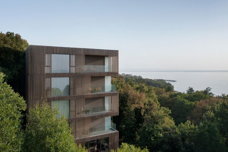 La modificación térmica de la madera Lunawood hace que sea estable y resistente a la intemperie